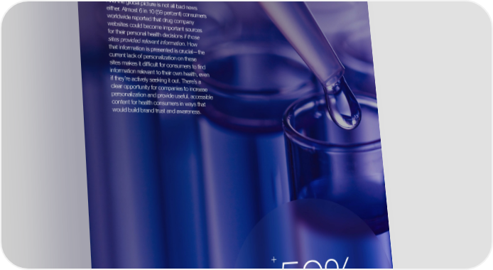 ASTOUNDCOMMERCE.COM ASTOUND HEALTH REPORT 2023 And the global picture is not all bad news GLOBAL UK either. Almost 6 in 10 (59 percent) consumers NORTH AMERICA LATAM worldwide reported that drug company websites could become important sources Trust in Information EUROPE MENA for their personal health decisions if those sites provided relevant information. How that information is presented is crucial—the current lack of personalization on these sites makes it difficult for consumers to find information relevant to their own health, even if they’re actively seeking it out. There’s a clear opportunity for companies to increase 50% personalization and provide useful, accessible I believe all the information 44% content for health consumers in ways that drug companies provide to be 49% would build brand trust and awareness. accurate and truthful 44% 72% 67% 60% I believe the information contained 52% in clinical study results is 59% accurate and truthful 57% 80% 75% If drug companies would provide 59% relevant medical information on 57% their websites, they could become 51% an important source in my personal 57% healthcare decision-making 69% + 74% 59% Figure 14: Percentage of respondents by region expressing consumers worldwide reported that agreement with each statement. drug company websites could become important sources for their personal health decisions 22 23